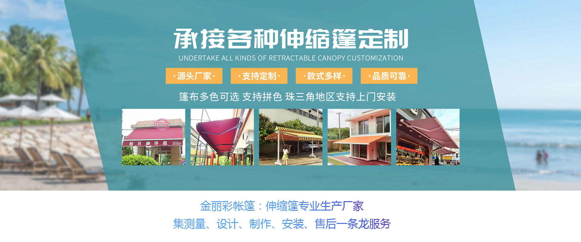 中山市金麗彩帳篷有限公司成立于2002年,是一家集遮陽篷配件生產(chǎn)、批發(fā)戶外休閑用品的專業(yè)彩蓬安裝制做工程公司,在廣東地區(qū)擁有大量彩樣板工程實例,公司技術力量成熟,專注承接定制制作安裝各種遮陽、遮雨、固定或活動蓬、展覽蓬、鋁合金無線遙控電動蓬、廣告蓬、歐式造型蓬、戶外休閑傘等產(chǎn)品。本公司還可以根據(jù)用戶需求制作各款大型戶外停車場帳蓬、款式新穎、質量可靠、價格實惠。公司位于中國廣東省中山市沙溪鎮(zhèn),交通方便,物流快捷。金麗彩帳篷本著“客戶為先,誠信至上”的原則,熱誠歡迎各界朋友前來我司參觀、考察、洽談業(yè)務。